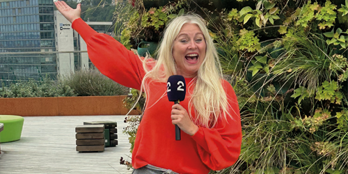 For å markere et etterlengtet høytrykk sender TV2 og Eli Kari Gjengedal værmeldingen fra takterrassen på BIRs hovedkontor på Lungegårdskaien 42.