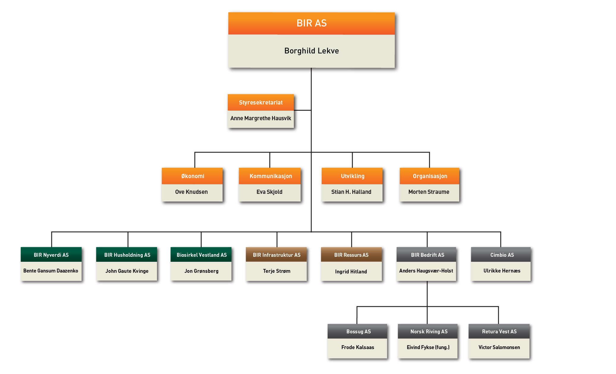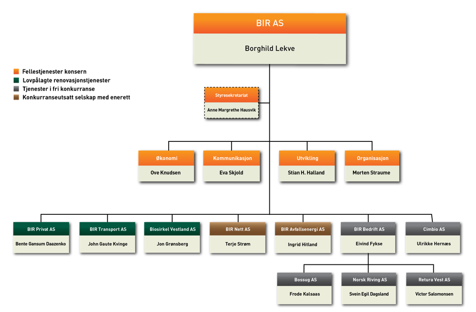 BIR sin rolle og samfunnsmandat krever en utvidet aktsomhet hos styremedlemmer og ledere i forhold til rolleforståelse og etisk adferd. Det er derfor utarbeidet verdier og etiske prinsipper for utøvelse av lederskap i BIR, som tydeliggjør krav til styre- og ledelsesadferd for vår konsernledelse og styremedlemmer i våre selskaper. Les mer her
